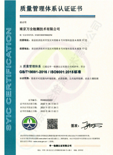 南京萬全檢測技術(shù)有限公司,籌建于2013年1月,注冊資金500萬,公司坐落于南京經(jīng)濟(jì)技術(shù)開發(fā)區(qū)興智路6號興智科技園A棟17層,實(shí)驗(yàn)室占地面積1750余平米。公司是一家獲得省級CMA計(jì)量認(rèn)證資質(zhì)、具有獨(dú)立法人、政府認(rèn)可的綜合性、專業(yè)性的檢測機(jī)構(gòu)。環(huán)境監(jiān)測業(yè)務(wù)是其重要的檢測業(yè)務(wù)之一,目前已獲得省級計(jì)量資格認(rèn)可項(xiàng)目314項(xiàng),設(shè)備齊全,具有較強(qiáng)的技術(shù)能力。